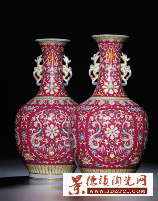 清乾隆 紫地粉彩龍紋夔耳瓶一對(duì) 以3504萬(wàn)的高價(jià)成交