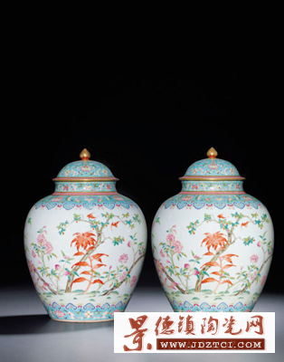 清道光 粉彩麗景雁來(lái)紅蓋罐一對(duì) 678萬(wàn)的成交