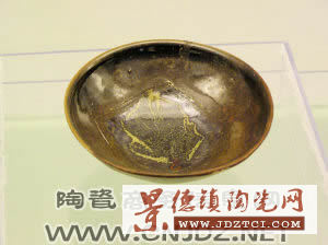 “宋代黑釉木葉紋碗”為宋代吉州窯瓷。碗內(nèi)底有楓葉形紋花,呈黑釉彩色,釉面明亮深沉,含蓄端莊,色彩深沉,有一種誘人的內(nèi)在美。釉面翻過(guò)來(lái)似草帽,故又稱斗笠碗。據(jù)史料記載,宋代飲茶風(fēng)盛,上至宮廷、下及民間極為盛行。這種木葉紋花碗,由吉州藝人采用黑釉瓷器以一種別出心載的技法制成,為我國(guó)陶器發(fā)展史上的一大曠世杰作,它為研究宋代茶文化提供了可靠的物件依據(jù)。據(jù)專家介紹,“吉州窯黑釉木葉紋碗”存世量極少,非常珍貴。據(jù)介紹,目前國(guó)家博物館都沒(méi)有這種窯瓷碗,而寧夏博物館現(xiàn)有兩件。