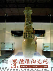 觀眾在觀賞景德鎮(zhèn)官窯宋代影青板依罐