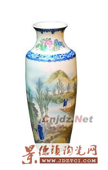1994年,我國著名陶瓷鑒定專家耿寶昌率專家組來到長沙市博物館,為館藏陶瓷作定級鑒定。當市博物館工作人員把這件釉下五彩瓶展現(xiàn)在耿老面前時,這位來自故宮博物院、鑒定過上百萬件陶瓷的專家一反“處世不驚”的常態(tài),興奮地連聲說:“好!好!好!”并當即將其定為國家一級文物。這件瓷瓶胎白如玉,其圖案是“釉層下的設色山水人物畫”,是醴陵釉下五彩的代表作。畫面色彩富麗而不失淡雅,山水深遠而不失恬靜,人物神情閑適,表現(xiàn)了文人士大夫對田園風情的向往。