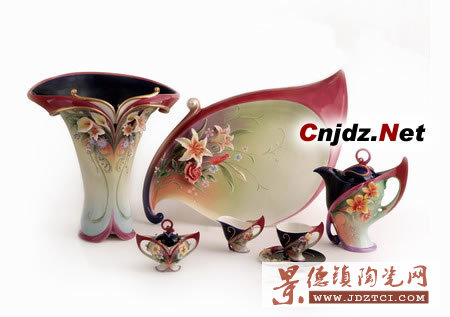 「風(fēng)華蝶影」系列設(shè)計(jì)師為法藍(lán)瓷的“臺(tái)柱設(shè)計(jì)師”何振武先生,其所設(shè)計(jì)的“蝶舞”系列曾榮獲2002年紐約國際禮品展首獎(jiǎng),廣受消費(fèi)者喜愛,至今仍為法藍(lán)瓷最暢銷的系列作品之一。2007年,何振武再次以蝴蝶為主題,推出“風(fēng)華蝶影”系列,融合寫意的簡潔造型與繁復(fù)的細(xì)節(jié)刻畫,流露華麗時(shí)尚氛圍。在作品中,設(shè)計(jì)師解構(gòu)了蝴蝶的身體造型,化為外型上的簡潔線條,例如大盤造型即是由蝴蝶翅膀幻化而來,茶壺、杯盤等器型中也處處可見寫意的翅膀線條。除了流暢寫意的造型外,設(shè)計(jì)師更將蝴蝶身上的斑斕色彩化為一朵朵嬌艷動(dòng)人的花朵,使簡潔中更見繁復(fù)華麗的細(xì)節(jié),也展現(xiàn)了法藍(lán)瓷獨(dú)樹一格的細(xì)膩工藝。色彩方面,更是突破傳統(tǒng),大膽的使用傳統(tǒng)中前所未見的藍(lán)黑色系,不但襯托出花朵的繽紛色彩,更流露創(chuàng)新時(shí)尚的現(xiàn)代感。