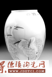 讓裝飾繪畫(huà)與瓷器更完美地結(jié)合,這是李游宇創(chuàng)作漢光瓷“白鳥(niǎo)”系列的一種想法,一種探索,他選擇了鷺鷥、和平鴿、丹頂鶴、鸚鵡等白色鳥(niǎo)為題材,在白色里找灰層次,在釉下彩里作沒(méi)骨與工筆。