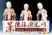 當(dāng)欣賞這組羅漢像時(shí),可感到有一種粗獷、蒼勁、人格化的古拙美。按一般所見(jiàn)宋代瓷塑佛像,衣服均上青白釉,而頭、頸、手均為素胎,但此三尊羅漢像,衣袖內(nèi)可見(jiàn)青白釉,而衣袍正面卻為素胎,頭、手也無(wú)釉,細(xì)辨表面又不似脫釉(一般影青瓷青白釉不會(huì)脫釉),是反瓷,還是當(dāng)時(shí)未上釉的殘次品,待考。