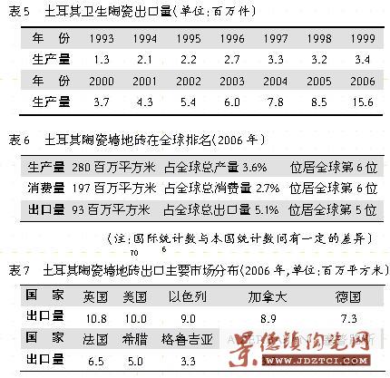 在陶瓷墻地磚領(lǐng)域,土耳其是全球第5大出口國(guó),僅2005年土耳其出口陶瓷墻地磚總量達(dá)89百萬(wàn)平方米,其主要出口是歐洲和美國(guó)。