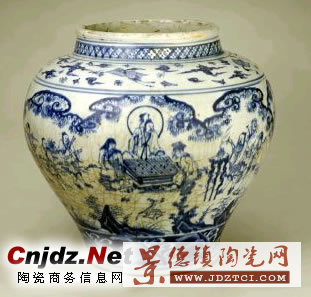 青花八仙慶壽紋罐,明景泰,高35.3cm,口徑21.5cm,足徑20cm