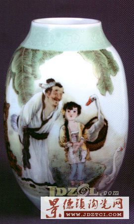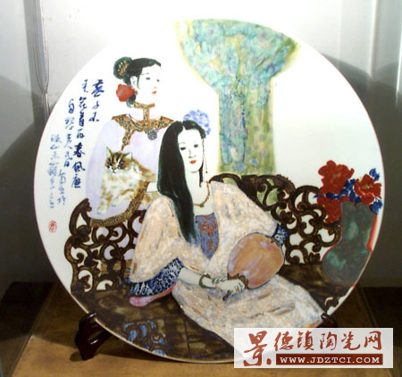 “李菊生陶瓷藝術(shù)館”就在“中華陶藝村”他家的別墅樓中,占據(jù)了兩層樓面、六個展室。此次共有51件藝術(shù)陶瓷作品展出,大部分是他首創(chuàng)的高溫顏色釉裝飾人物藝術(shù)瓷,也有青花、釉里紅綜合裝飾藝術(shù)瓷,器型是瓷瓶、瓷盤、瓷板,還有部分粉彩藝術(shù)瓷瓶等。