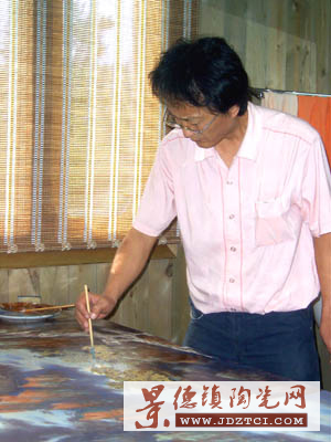 “中華陶藝村”顧名思義,是個不同尋常的瓷苑高地,薈萃了景德鎮(zhèn)數(shù)十位重量級陶瓷藝術(shù)家。這個民間社團(tuán)性的“村長”大概非任命而是公推的。身為景市美術(shù)家協(xié)會副主席的實(shí)力派陶藝家龔循明,原本對現(xiàn)在泛濫貶值的各種頭銜不屑一顧,卻頂起了這無級別卻有份量的名頭。在他的工作室里,龔循明剛好完成了一幅大瓷板風(fēng)景畫,讓我眼睛一亮:構(gòu)圖獨(dú)特、意蘊(yùn)深遠(yuǎn),自不必說;光是畫面的造型語言和筆墨技法,就包含了東西方原本各異但被此畫融合得渾然一體的多種繪畫元素,使人有既熟悉又陌生的感覺,一種全新的審美感覺。龔先生說:“明代大畫家石濤的‘筆墨當(dāng)隨時代’箴言,應(yīng)是每個有追求的藝術(shù)家的創(chuàng)作準(zhǔn)則。我不愿意從題材到技法都重復(fù)古人,真正的陶瓷藝術(shù)家應(yīng)該師古而不泥古,借鑒而不崇洋,每個時代都要努力超越和創(chuàng)新!彼說,10多年來,一直在努力探索陶瓷山水畫的新路子。比如,這幅山水畫中既有線條、皸法等傳統(tǒng)筆墨,也有西方油畫的色塊技法……