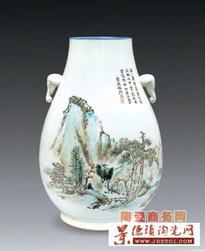 在街頭畫瓷的日子,程門經(jīng)常隨意地在瓶上點(diǎn)綴,或閑釣大江,或策杖問(wèn)山水,或駕舟棲于柳塘,身寄塵世,心超物外,逍遙于宇宙之間。留白的空間越來(lái)越大,道家之氣,被他在淺絳山水中染開。最初,他極欣賞米氏父子的云山,煙云變滅,林泉相映,他以為這種獨(dú)具個(gè)性的畫語(yǔ),便是藝術(shù)與自然的最佳結(jié)合物。但如今,他又認(rèn)識(shí)到“寫云山當(dāng)以氣勝,不必米氏父子為然也!睖\絳彩宗師最終領(lǐng)悟了“瓷道”,并成為無(wú)人可超越的大師。