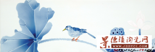 釉中青花在畫(huà)的時(shí)候比較容易控制,而且燒制起來(lái)成功率較高,燒成后基本上和畫(huà)的效果差不多,變化不大,缺少驚喜的感覺(jué)。釉下的青花作品則不然,錢(qián)進(jìn)軍特別喜歡釉下作畫(huà),直接在瓷坯上描繪。受齊白石影響,錢(qián)進(jìn)軍在青花分水中加入工筆的畫(huà)法,將大寫(xiě)意和工筆相結(jié)合!端叵恪返恼w構(gòu)圖中荷葉用了寫(xiě)意的手法,湊近一看,一只工筆小鳥(niǎo)在荷塘里回頭張望,粗細(xì)有致!短煜闱迤G》里的工筆蝴蝶也是活靈活現(xiàn)。