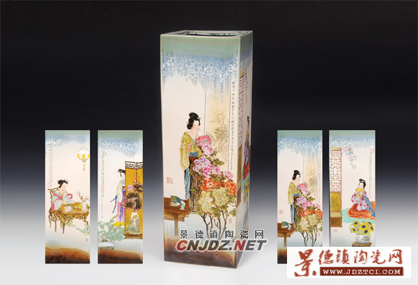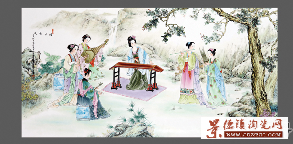 熊金榮帶著些許期盼再次參加了杭州藝博會,《唐韻》就掛在他展位顯眼的位置,凡經(jīng)過此處的參觀者都會停下腳步,仔細(xì)端詳一番瓷畫中的幾位變形的美女,她們是那么的氣定神閑,是那么得讓人具有想象的空間。