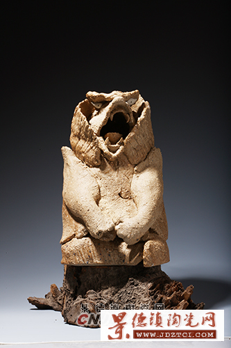 在努力探索陶瓷釉料新的藝術(shù)表現(xiàn)力的同時,周國楨一直沒有停止對陶瓷泥料的試驗與探索。在他的陶藝大觀園里,有的作品是用瓷土創(chuàng)作的,有的作品是用陶土創(chuàng)作的,還有作品是將瓷土與陶土進(jìn)行不同比例的勾兌后創(chuàng)作的……值得大書特書的是周國楨首次成功讓粗質(zhì)材料成為陶瓷藝術(shù)創(chuàng)作的有用之材。1985年,周國楨在經(jīng)過多次失敗性試驗之后,成功地將素被人們用來制作保護(hù)陶瓷燒成的匣缽或耐火磚、耐火板之用的“低賤之材質(zhì)”——匣缽?fù)烈?a href="http://iv978.cn" target="_blank">陶藝創(chuàng)作中。結(jié)果使其陶藝作品頓時呈現(xiàn)出耐人尋味的原始、古拙、粗獷、純真之風(fēng)格,獲得了意想不到的藝術(shù)效果。以匣缽?fù)寥〈?xì)的瓷土,以及匣缽?fù)恋乃囆g(shù)表現(xiàn)力的成功發(fā)掘和應(yīng)用,使周國楨又一次完成了藝術(shù)“變法”,順利進(jìn)入到 “古風(fēng)時期”。