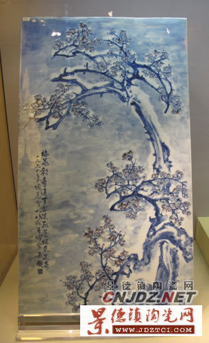 這件青花釉里紅瓷板畫(huà)是王步大師晚年力作。王步(1898~1968年),字仁元,號(hào)竹溪、陶青老人,江西豐城人。他運(yùn)用有別于傳統(tǒng)青花“雙鉤分水法”的“分水寫(xiě)意法”,創(chuàng)造了青花瓷繪藝術(shù)的新高峰。他曾在文章中論述:先混水后勾線,畫(huà)者可以揮灑自如,不受限制,畫(huà)出來(lái)的畫(huà)活潑生動(dòng),線條也清爽。王步的成就一直受到有關(guān)部門(mén)的器重,先后被吸收為中國(guó)美術(shù)家協(xié)會(huì)會(huì)員、江西省美協(xié)理事、景德鎮(zhèn)市美協(xié)副主席、景德鎮(zhèn)市政協(xié)常務(wù)委員等,被譽(yù)為當(dāng)代“青花大王”。該作品運(yùn)用了中國(guó)畫(huà)的表現(xiàn)手法,以濃重青料繪老樹(shù)梅枝,虬曲蒼勁,變化多姿;以淺淡青料渲染漫天飛雪,層次豐富,意境深遠(yuǎn);以釉里紅繪梅花,豐姿綽約,紅艷欲滴。青花和釉里紅的燒制難度很大,如此青、紅發(fā)色均艷麗完美者十分難得。留白處題寫(xiě)草書(shū)款:“梅花歡喜漫天雪,凍死蒼蠅未足奇。一九六四年陶青老人竹溪王步寫(xiě)意”,畫(huà)青花“竹溪”“王步”二方章。