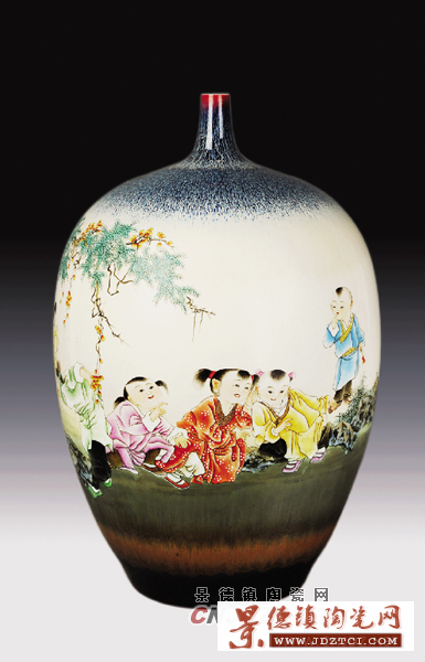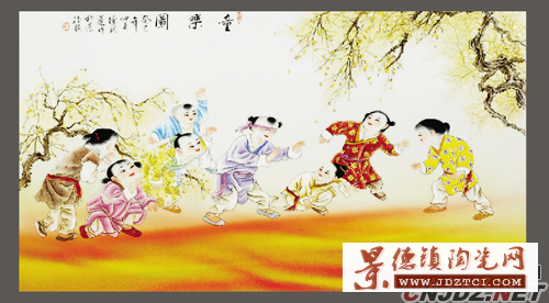 收藏起夢(mèng)想之后,她安靜地做著瓷廠的工作,業(yè)余時(shí)間她還是會(huì)寫(xiě)寫(xiě)畫(huà)畫(huà),從來(lái)沒(méi)有怠慢自己的對(duì)繪畫(huà)的愛(ài)好。亦如,眾多女子的歸宿一樣,結(jié)婚生子也是她的必經(jīng)之路,婚后生活她的重心更多地放在撫育孩子的上面,不過(guò),也正是這樣一段經(jīng)歷讓她的“嬰戲”系列作品有著更加生動(dòng)的元素,滿滿的母愛(ài)。欣賞徐筱蓮的“嬰戲”作品,明快的用色,流暢的構(gòu)圖,透著現(xiàn)代表情的孩童,咋一眼覺(jué)得是在觀賞舊時(shí)小孩的天真嬉戲,但,不知不覺(jué),就區(qū)分開(kāi)了此時(shí)與彼時(shí)的不同。