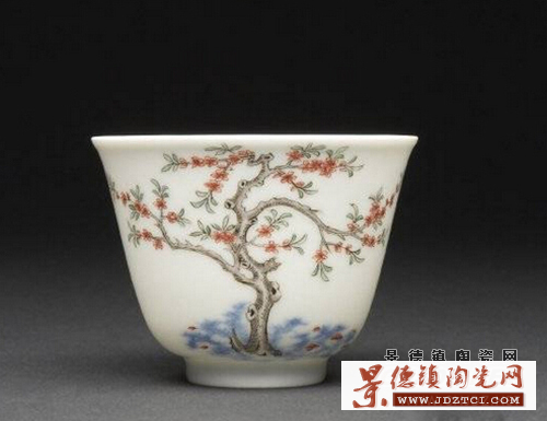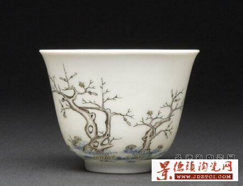 “十二月花卉紋杯”12件為一套,其外形特點為:撇口、深腹、淺圈足、胎體輕薄、器型精巧絕倫,造型規(guī)整優(yōu)美,胎質(zhì)乳白、器薄如紙、晶瑩剔透;其外壁分別用一年十二個月中不同的花卉來裝飾,并配以相應的詩句?滴跏ɑ鼙系幕ɑ芤运苫ㄩ_始,然后以此為迎春花、桃花、牡丹花、石榴花、荷花、蘭花、桂花、菊花、芙蓉花、月季花和梅花,一杯一花,腹壁一面繪畫,另一面題詩,詩句出自唐詩。每只杯上繪一種應時花卉,指代歷史上的著名女性,并題上相應的詩句,慣稱“十二月花神杯”。規(guī)格:口徑6.7厘米,足徑2.8厘米,高4.9厘米。