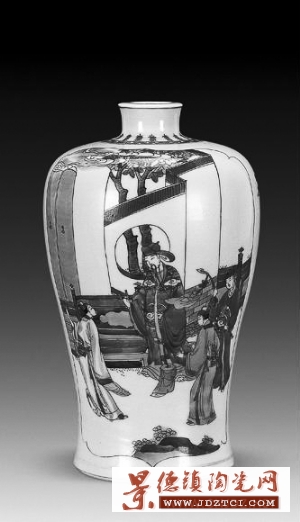 2、人物繪畫題材多取自《封神榜》、《三國演義》、《楊家將》等中國歷史故事和神話傳說,如文王訪賢、木蘭從軍、周處斬蛟、加官進爵、指日高升、竹林七賢、點石成金、蘇東坡游赤壁等等。為便于鑒別,現(xiàn)把康熙人物畫法主要特征總結(jié)如下,雖不免以偏概全,而其特征在焉。