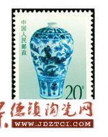 1991年10月11日,我國發(fā)行一套《景德鎮(zhèn)瓷器》特種郵票,其中第二枚圖案為“元青花追韓信圖梅瓶”。