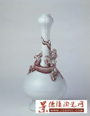 白釉塑貼紅蟠螭紋蒜頭瓶白釉塑貼紅蟠螭紋蒜頭瓶