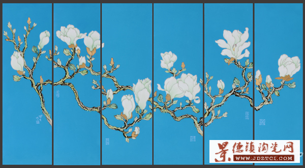高貴、潔白、芬芳、清秀,在深沉蒼茫的藍(lán)色時(shí)空中,當(dāng)春寒的料峭還在彌散著瑟瑟的感覺,卻有一種如白玉般純潔的花朵正悄悄地綻放枝頭,體干枯皴,聚滿歲月滄桑,虬枝挺勁,似迎風(fēng)斗寒之錚錚鐵骨。而在鐵枝老干間,竟煥發(fā)出一片蓬勃生機(jī),在異常堅(jiān)實(shí)古樸的金色花托上,玉蘭花朵如純潔無瑕之仙姿屹立,明麗耀空,奪皎月之魂魄、凝冰雪之精髓,塵世喧囂為之而息,百紫千紅見之遜讓。這便是實(shí)力派陶瓷藝術(shù)家周國(guó)生創(chuàng)作的工筆粉彩《夢(mèng)》系列所展現(xiàn)出來的如夢(mèng)如幻的迷人意境。