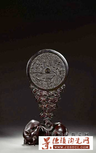 桃花流水人物紋吳牛喘月銅鏡(拍品編號(hào):1214)起拍價(jià)¥650,000元;D:17cm;
