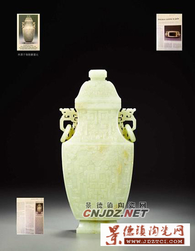 清乾;H:28cm;說(shuō) 明:古人制作玉器時(shí)不僅注重原料美、質(zhì)地美、顏色美、造型美,而是把人類的精神文 明化為玉器的靈魂,給玉器玉雕以生命,給玉賦予了更深刻的內(nèi)涵。清代考據(jù)學(xué)的發(fā)達(dá),掀 起復(fù)古風(fēng)尚。工藝造型藝術(shù)及紋飾圖案都受到這種時(shí)代風(fēng)氣的影響,明顯的表現(xiàn)于仿古器物 的風(fēng)格中。因?yàn)榍宕觊g這種創(chuàng)作風(fēng)格極盛,又得到皇帝的鼓勵(lì),傳世的佳作,以這段期間 的作品數(shù)量最多,且都端正規(guī)矩,肅穆莊重,刻工精細(xì),毫無(wú)茍且之處,都是出自當(dāng)時(shí)最好 的玉工之手。黃玉雙活環(huán)耳夔龍紋方瓶體積較大,以整料和闐黃玉雕成,仿古式風(fēng)格,器分 蓋與瓶?jī)刹糠。整體呈扁形。蓋作覆斗貌,平頂,頂上為高鈕。方瓶束頸,頸部雙螭龍耳, 墜有活環(huán),瓶口與蓋口外壁各飾一匝夔龍紋。頸部以下折肩弧腹,底部收斂,下承高束腰外 撇四方圈足。是瓶外壁分瓶蓋,瓶頸,瓶身三個(gè)裝飾區(qū),邊沿起線,邊框線之間自然形成裝 飾區(qū),裝飾區(qū)內(nèi)則以壓地技法滿飾具有青銅古彝器風(fēng)韻的夔龍紋,龍紋威凜,氣韻典雅,具 典型乾隆仿古風(fēng)格。以天然之玉質(zhì)與仿古之器型取勝,雕琢精細(xì),亦契合“清代玉”之“古 尚簡(jiǎn)約”的美學(xué)理念。 備 注:來(lái)源于倫敦蘇富比