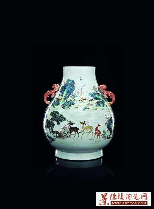 此件拍品與館藏及市場中所流通的粉彩百鹿尊皆有不同,此器面的百鹿尊存世量更為稀少,圖案特點是將視覺中近大遠(yuǎn)小的自然現(xiàn)象靈活地運用在器物上。