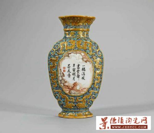 中貿(mào)圣佳將于11月15日槌響秋拍,179件瓷器類拍品不乏可圈點之作。像一件頗有人文色彩的清乾隆唐英制仿古銅青綠浮雕夔龍開光石紋釉詩文壁瓶就非常引人矚目。據(jù)了解,此類唐英所制瓷質(zhì)文房用品常以詩文為裝飾重點,突出了唐英濃郁的文人氣質(zhì)與高超的制瓷技藝,成為傳世佳品?v觀今日的公私收藏中,此種仿古銅青綠描金開光裝飾形式的唐窯壁瓶數(shù)量稀少,又以仿石紋釉詩文作主題的就更加珍貴了,而能流通者則更是少之又少。此件拍品的估價為160萬至200萬元,這一估價顯然很具有誘惑力。