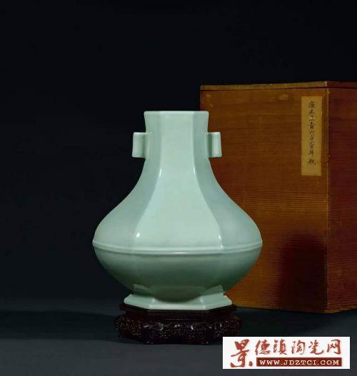 器型獨特,腹部矮扁,是雍正一朝獨有的造型。通體施粉青釉,釉質(zhì)肥腴純凈,僅腹部凸起兩道弦紋,盡顯雍正一朝含蓄而高雅的藝術(shù)品位。