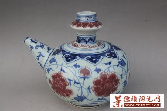 明代洪武時釉里紅瓷器較多,其造型紋飾有元代遺風,顏色淺紅淺灰,很少有純正的。宣德朝的釉里紅燒制極為成功,形成了鮮艷的寶石紅色。釉里紅由于在康熙后期已經成功制作,所以雍正早期釉里紅制品有康熙遺風,康熙后期御廠瓷器制作水平有很大提高,瓷器繪畫以及釉里紅發(fā)色等有所變化,多了釉里紅發(fā)色。因為釉里紅的燒造難度較大,發(fā)色難以掌握,所以仿造者更加容易露出破綻。