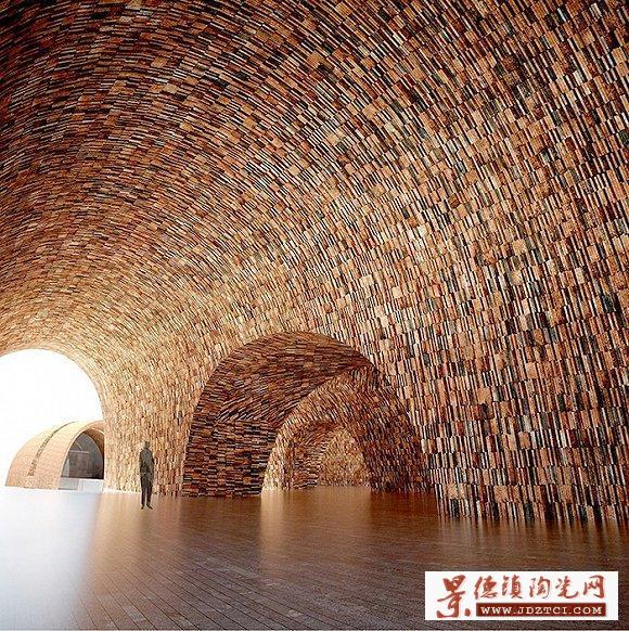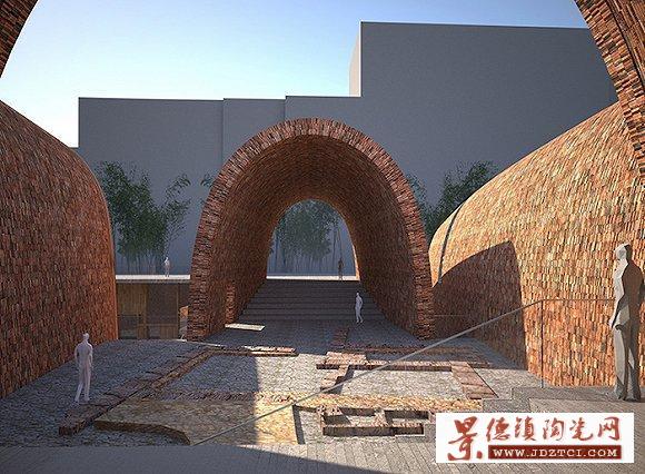 根據(jù)建筑模型和效果圖看,建筑公司朱锫工作室將整個博物館分成了地上和地下兩部分。地上部分正是工人們用瓦片層層堆砌出的“窯”,遠看像極了巧克力卷,近看則能通過仿古的瓦片堆疊,感受到“窯”簡單、古樸的氣質(zhì)。