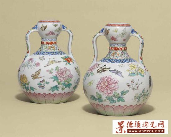 5月9日,一對(duì)乾隆御制粉彩花蝶紋如意耳葫蘆尊以咨詢價(jià)上拍倫敦佳士得,以1472.5萬(wàn)英鎊成交,約合人民幣1.31億元。而此前,它們的估價(jià)僅在1000英鎊(約合人民幣9000元)以下,花瓶的主人之前并沒有在意它的價(jià)值,表示最初只是被擺放在壁爐上的裝飾品,是19世紀(jì)30年代時(shí)她的親戚收購(gòu)得來(lái)的。
