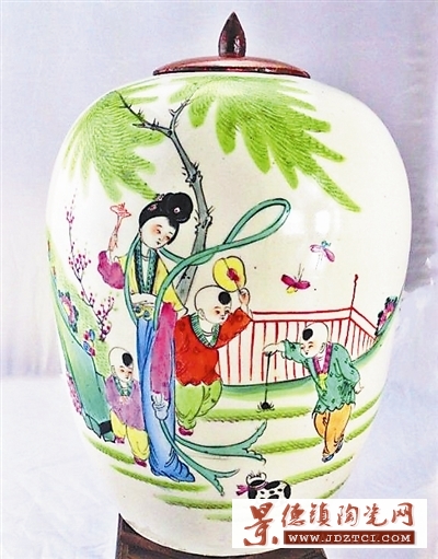晚清三娘教子淺絳彩大罐(圖三)