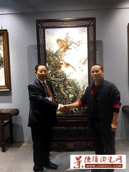 釉上根雕展示廳考察并指導(dǎo)。