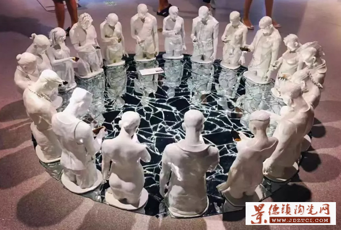 而更讓人驚喜的是創(chuàng)作手法與材料的豐富大大滿足了觀眾對(duì)陶藝的想象。綜合材料和3D打印及電子雕刻技術(shù)、復(fù)合翻模注漿技術(shù)、泥條盤注、傳統(tǒng)黑陶、白瓷工藝的突破與創(chuàng)新,彩繪與陶藝的結(jié)合,令人感嘆陶藝已不再是我們印象中簡(jiǎn)單的泥與火的藝術(shù),而是一個(gè)豐富多元的綜合性藝術(shù)。