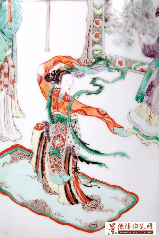 但是從紙墨上跳脫到瓷器繪畫上的美人,則是從明末清初開始盛行,且世人皆稱康熙時期為最美。清末《陶雅》稱:“瓷器最重畫工,雍正以花卉最工,人物則不及康熙遠(yuǎn)甚,尤以畫美人之瓶罐,不能見重于后世!