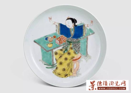康熙瓷器之所以獲得如此高的評價,不僅僅是指此時制瓷技術(shù)的造詣,更是康熙瓷器所具有的藝術(shù)價值。自由社會環(huán)境下,使窯工的創(chuàng)造更加自信,也使得圖案更加有精神。大量出現(xiàn)的圖片素材和完善的釉上彩技術(shù),使瓷器畫匠能夠充分地發(fā)揮,剛勁有力的長短線結(jié)合,平涂的設(shè)色,使畫面比書本里的插圖更為引人入勝。而且,五彩的表現(xiàn)手法和風(fēng)格都極有利于仕女圖的繪制,既可以將版畫中的人物形象生動的再現(xiàn),又可以賦予畫工自己想象的色彩,具有極強(qiáng)的觀賞性。