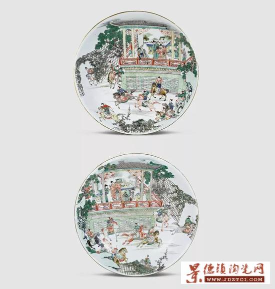 當(dāng)異彩紛呈的版畫被引入瓷器繪畫后,景德鎮(zhèn)畫匠偏于一隅的視野被完全打開,臨摹故事插圖到瓷器上更加用心。他們并不是原封不動的照葫蘆畫瓢,而是利用自己的想象力為畫片增加細(xì)節(jié),渲染上各種顏色,使故事人物和畫面更加形象。當(dāng)把表現(xiàn)情節(jié)的插圖畫上瓷器后,原先在書中需要翻頁才能“偶遇”的故事場景,變成了經(jīng)常性的舉目可見的立體瓷面的展示,那么原先的人物也從僅可平面欣賞中的書中走出,獨(dú)立的來到了生活空間中。