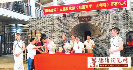為喜迎新中國(guó)成立七十周年,8月12日,“陶瓷世家”王錫良家族《祖國(guó)萬(wàn)歲·大師尊》開窯儀式在名坊園祖?zhèn)鞲G舉行。