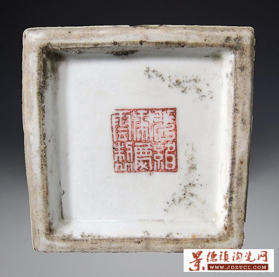 如古代書畫家一般,淺絳派畫家也有自己的名、字、號、齋堂軒名,他們會將這些信息留在他們的瓷繪作品之上,而器物底部是鈐印名章和堂號齋名最好的地方(圖4)。