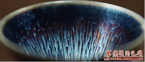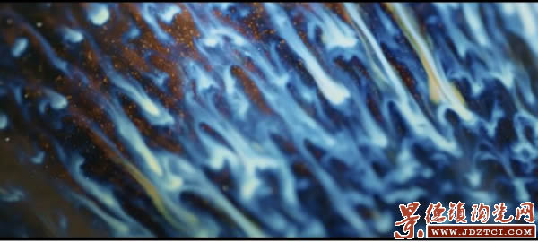靜置一天,第二天再來吹第二次釉,為了使“拉絲”效果具有更好的流動性和線條感,需要控制好吹釉的厚度和速度。而對于釉層厚度的控制,除了經(jīng)驗以外,反復(fù)試驗是必不可少的,由于顏色釉入窯前施釉效果都與成品不一樣,所以具有一定的未知性。只有在1300度的高溫柴窯爐里、燒制5天,出窯后才知道實際色彩。爐火純青,方得出窯萬彩,這種不可預(yù)知性,使顏色釉瓷成為令人期待的陶瓷品種。
